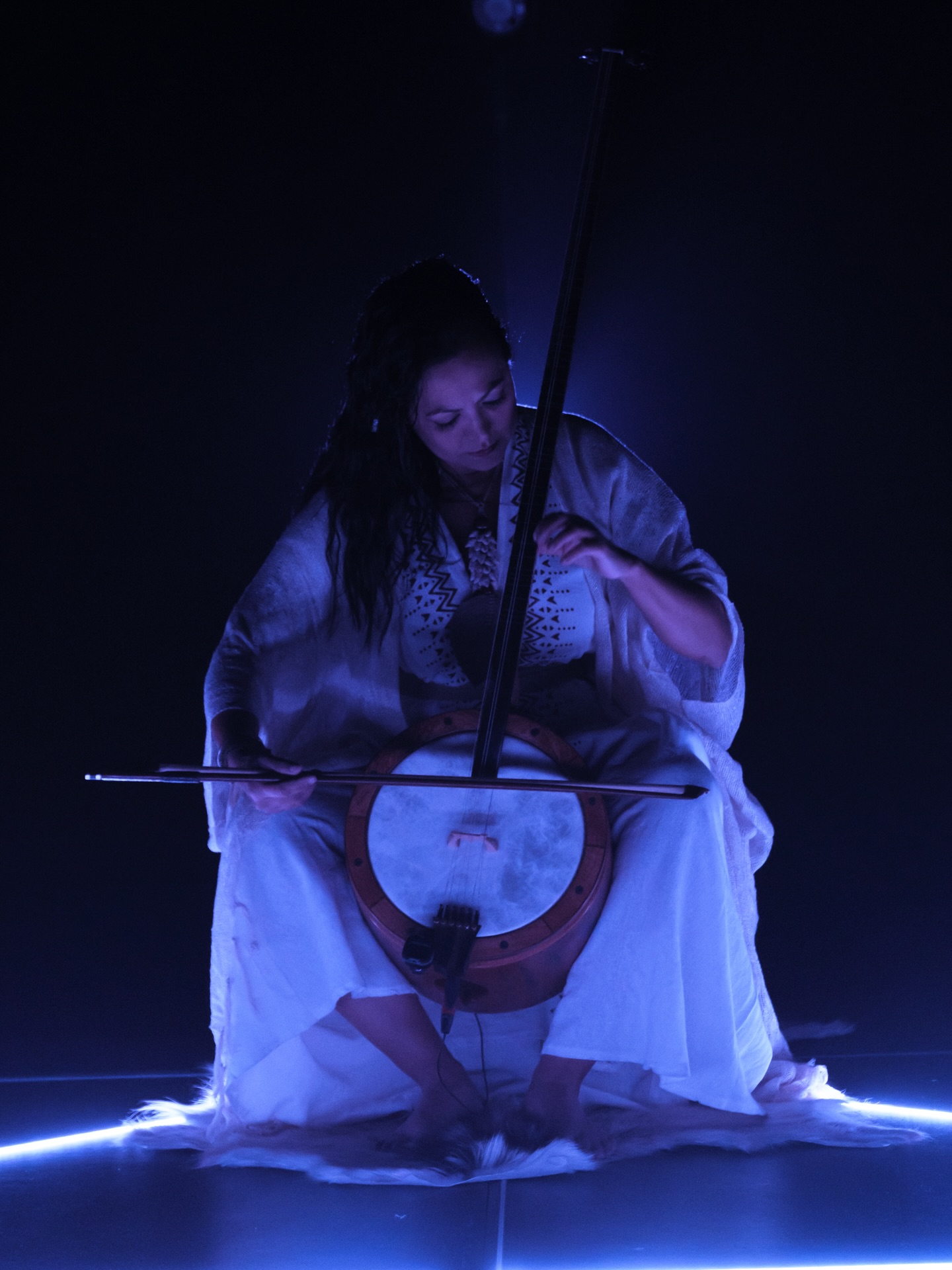 Los melismas heredados de los cantos sefardíes dialogan con los ritmos orgánicos del Atlas — secos, cíclicos, casi telúricos— creando una polifonía viva que enlaza territorios, tiempos y cuerpos. Esta herencia no se presenta como cita folclórica, sino como materia viva: un tejido sonoro contemporáneo que respira a través de las voces, las pieles, las piedras, los gestos y el silencio.