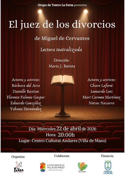 - 20:00h (Centro de la Cultura Andares): El grupo de teatro La Farsa presenta la lectura teatralizada de “El juez de los divorcios” de Miguel de Cervantes, bajo la dirección de María J. Batista.
